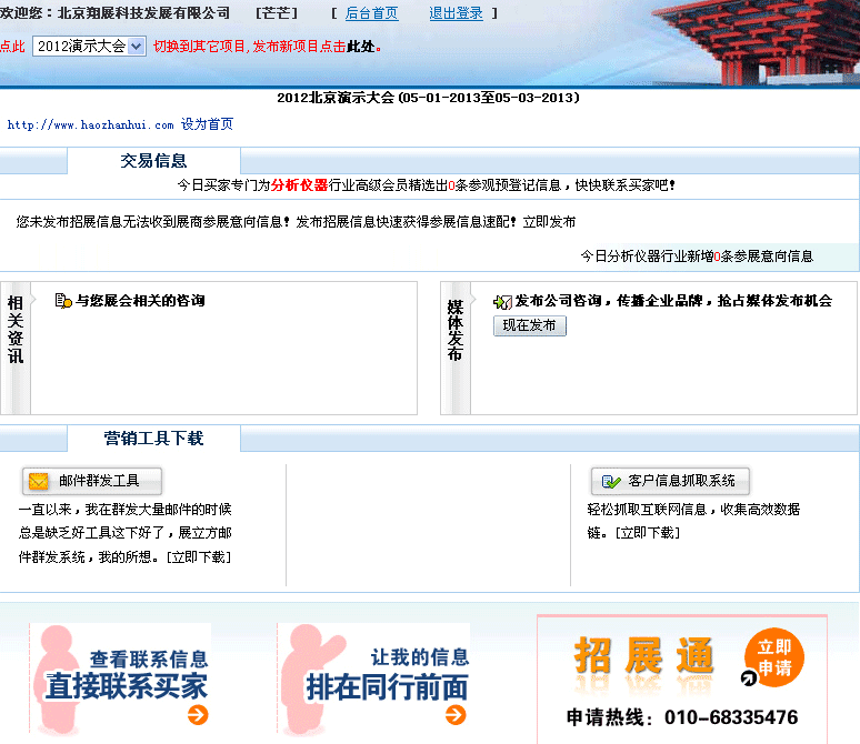 2.對成為好展會會員的主辦,請登錄后進入如下管理界面