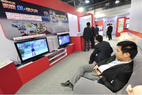 4月19日,參觀者在第六屆中國杭州電子信息博覽會上對比3D高清電視節目與普通電視節目的視覺效果。當日,為期4天的第六屆中國杭州電子信息博覽會暨第六屆杭州國際社會公共安全產業博覽會在杭州和平國際會展中心開幕。本屆杭州電博會以“智慧、融合、創新”為主題,共設展位近千個,展覽面積達2萬平方米,結合杭州和臺灣電子信息產業的優勢,重點展出智慧城市、云計算、物聯網、信息安全、移動商務、移動教育、數字家庭等方面的最新技術和產品。