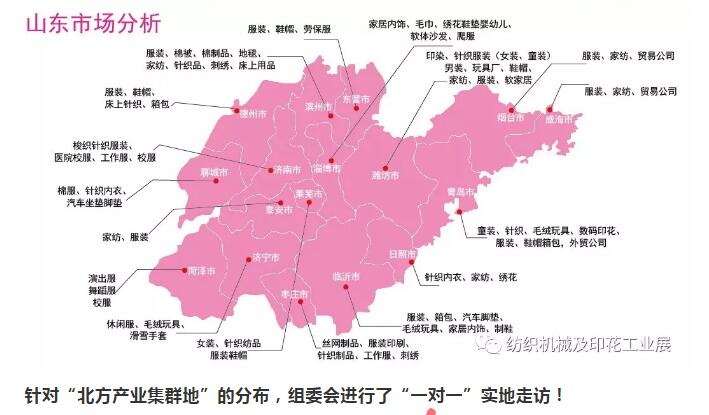 青島印花展是“中國北方唯一的紡織品印花工業展”。涉及的產業有印花印染廠、服裝廠、面料生產企業、泳裝、戶外用品、毛絨玩具、家紡、地毯、毛巾用戶及非紡織用戶等等。根據市場需求,組委會也進行了跑市場計劃,實地邀約!