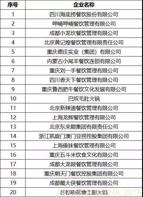 博覽會發布了2018中國餐飲集團百強排名。包括正餐集團50強、火鍋餐飲集團20強、快餐集團10強、團餐集團10強、西餐及休閑餐飲集團10強系列榜單。