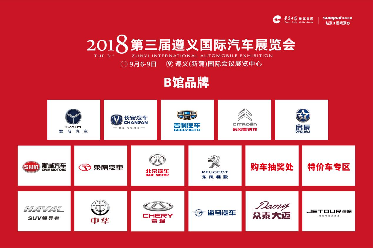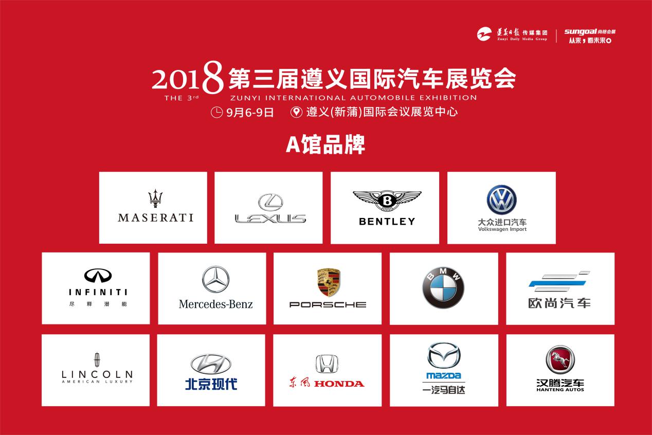 2018年第三屆遵義(新蒲)國際汽車展覽會(以下簡稱:遵義國際車展)9月6日-9日,將在遵義(新蒲)國際會議展覽中心盛大開幕。本屆車展由遵義日報傳媒集團、尚格會展股份有限公司主辦,遵義新蒲新區管委會協調支持,貴陽尚格會展服務有限公司、貴州匯博會展運營管理有限公司共同承辦,貴陽尚格會展服務有限公司執行承辦。
