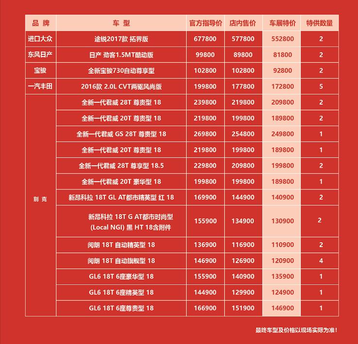 作為遵義最賣車的大型室內車展,遵義國際車展聯合廠家、經銷商車展放惠,讓我們看看哪個車型的降價幅度最大。只屬于遵義國際車展的特價車信息!