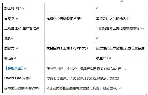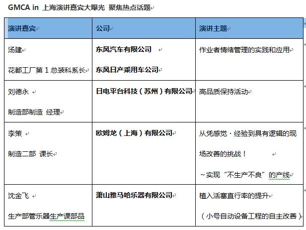 延續(xù)在日本舉辦30余年以來的傳統(tǒng),GMCA論壇曾于日本福岡、名古屋、仙臺(tái)以及泰國曼谷舉辦多次并大獲成功。我們將會(huì)邀約各個(gè)行業(yè)龍頭企業(yè)活躍在制造現(xiàn)場的一線監(jiān)督員通過分享實(shí)踐管理的經(jīng)驗(yàn)以及日本各大知名企業(yè)高層作為評(píng)審員對(duì)優(yōu)秀企業(yè)進(jìn)行表彰,更有中日兩國優(yōu)秀個(gè)例交流活動(dòng),希望通過此次活動(dòng)展示交流更優(yōu)秀的制造業(yè)管理水平、更先進(jìn)的制造業(yè)現(xiàn)場技術(shù),旨在通過分享探討,使中國制造業(yè)能夠通過智能制造以及高新技術(shù)的快速發(fā)展,提升并加快企業(yè)的轉(zhuǎn)型升級(jí)!
