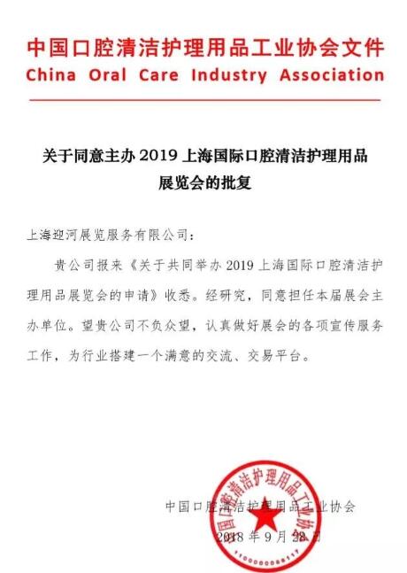 2019年展會市場工作啟動以來,組委會向口腔用品行業唯一的國家級協會——中國口腔清潔護理用品工業協會發出主辦邀請,積極磋商2019上海國際口腔清潔護理用品展覽會市場宣傳及招商合作。在雙方的共同努力下,中國口腔清潔護理用品工業協會正式發函成為2019上海國際口腔清潔護理用品展覽會主辦單位。