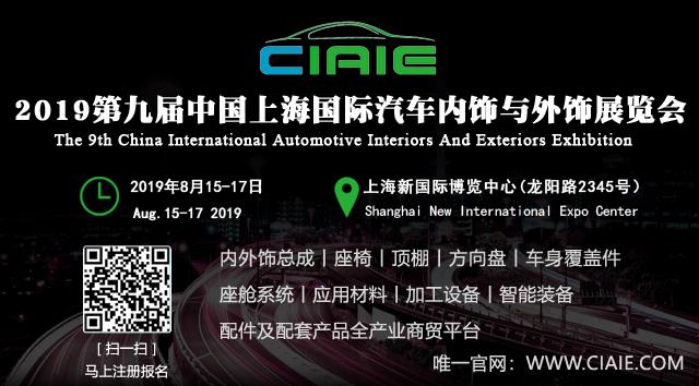 由英佛會議展覽(上海)有限公司主辦的“2019第九屆中國上海國際汽車內(nèi)飾與外飾展覽會”(CIAIE 2019)將再度起航,2019年8月15-17日于上海新國際博覽中心(浦東龍陽路2345號)舉行。