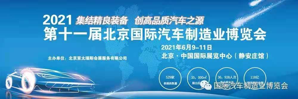2021北京國際汽車制博會,在各方鼎立支持下,在組委會積極籌備下,將于2021年6月9日-11日在北京.中國國際展覽中心(靜安莊)館耀世開啟!