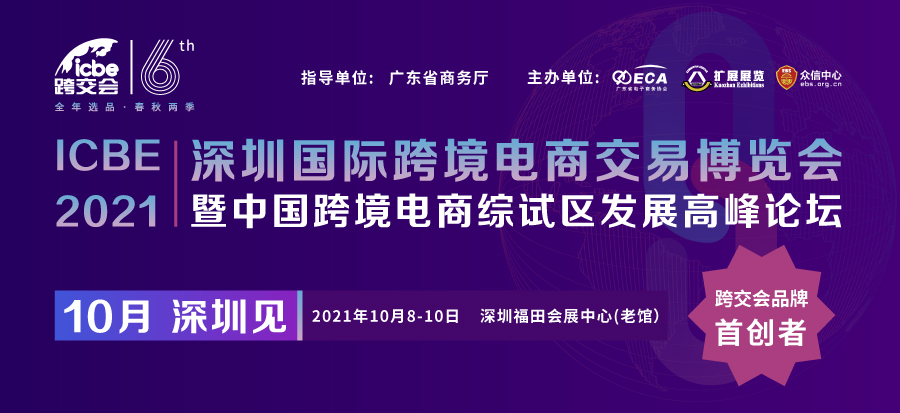 2021ICBE 深圳國際跨境電商交易博覽會暨中國跨境電商綜試區發展高峰論壇(簡稱“ICBE跨交會”)將于2021年10月8-10日在深圳福田會展中心(老館)隆重舉行,本屆展會展覽面積達100000㎡,上千家跨境優質工廠匯聚,50+跨境熱門品類集中呈現,100+場會議論壇活動同期舉行,創多項行業展覽之最,規模宏大,國內領航的跨境電商選品盛會邀您蒞臨!