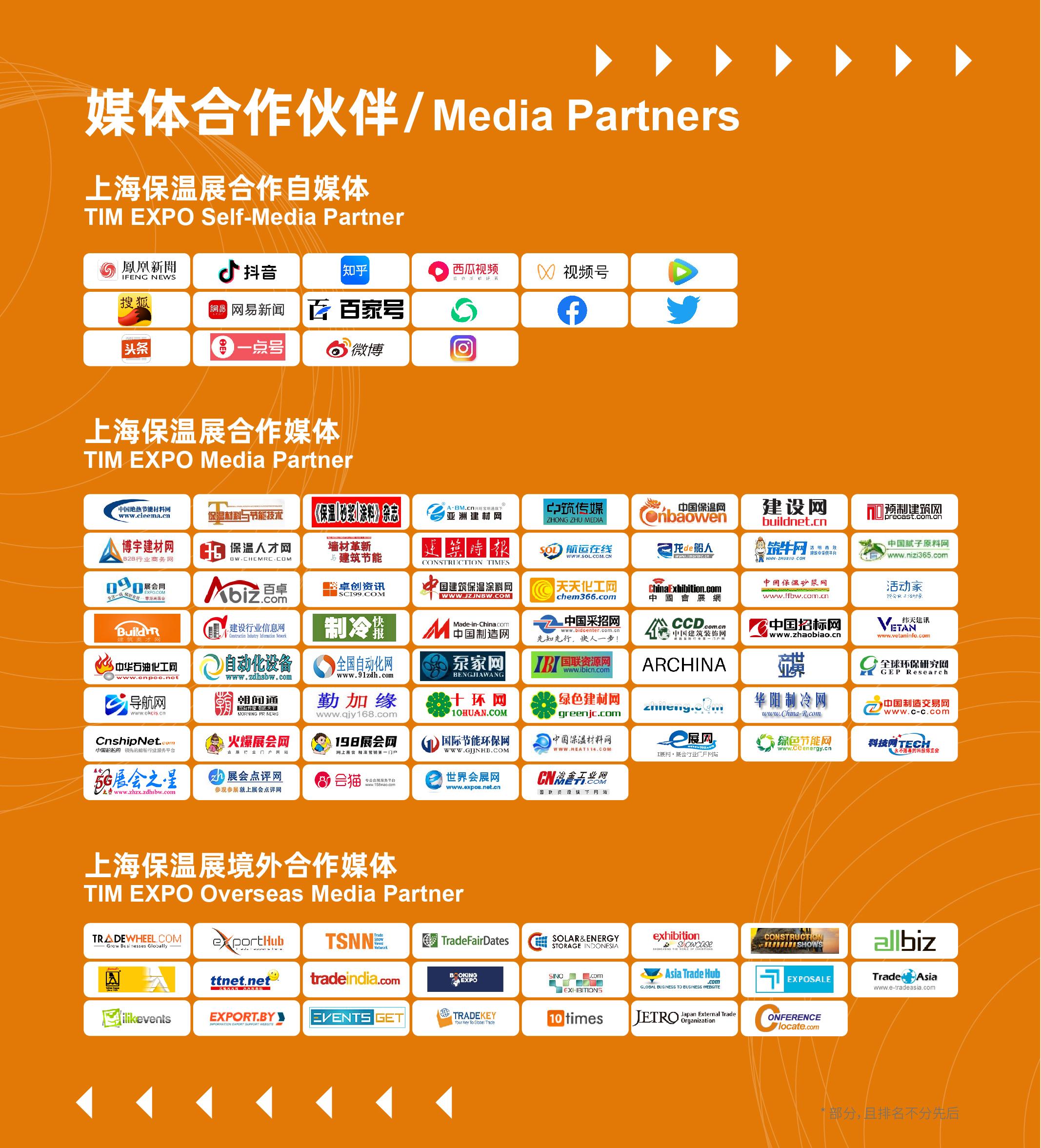 上海保溫展與中國(guó)保溫網(wǎng)、中國(guó)建筑保溫涂料網(wǎng)、《建筑節(jié)能保溫》雜志、博宇傳媒《保溫商情》、建設(shè)行業(yè)信息網(wǎng)、中國(guó)建設(shè)材料設(shè)備網(wǎng)、中國(guó)制造網(wǎng)、綠色建材網(wǎng)、制冷大市場(chǎng)、綠建之窗、《保溫精選》、活動(dòng)家、中國(guó)采招網(wǎng)、建筑英才網(wǎng)、TradeAsia Service、Asiatradehub、TradeWheel等數(shù)百家行業(yè)相關(guān)媒體進(jìn)行了深度合作、周期性報(bào)道展會(huì)信息。