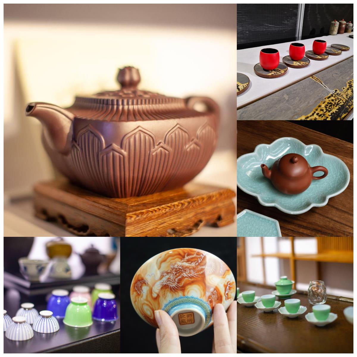 好茶配好器,以馮建群、張太友、應惠芳等為代表的紫砂藝人攜作品亮相,更有欽州坭興陶、建水紫陶、銀壺、建盞、鈞瓷、竹器等高端茶器悉數亮相;