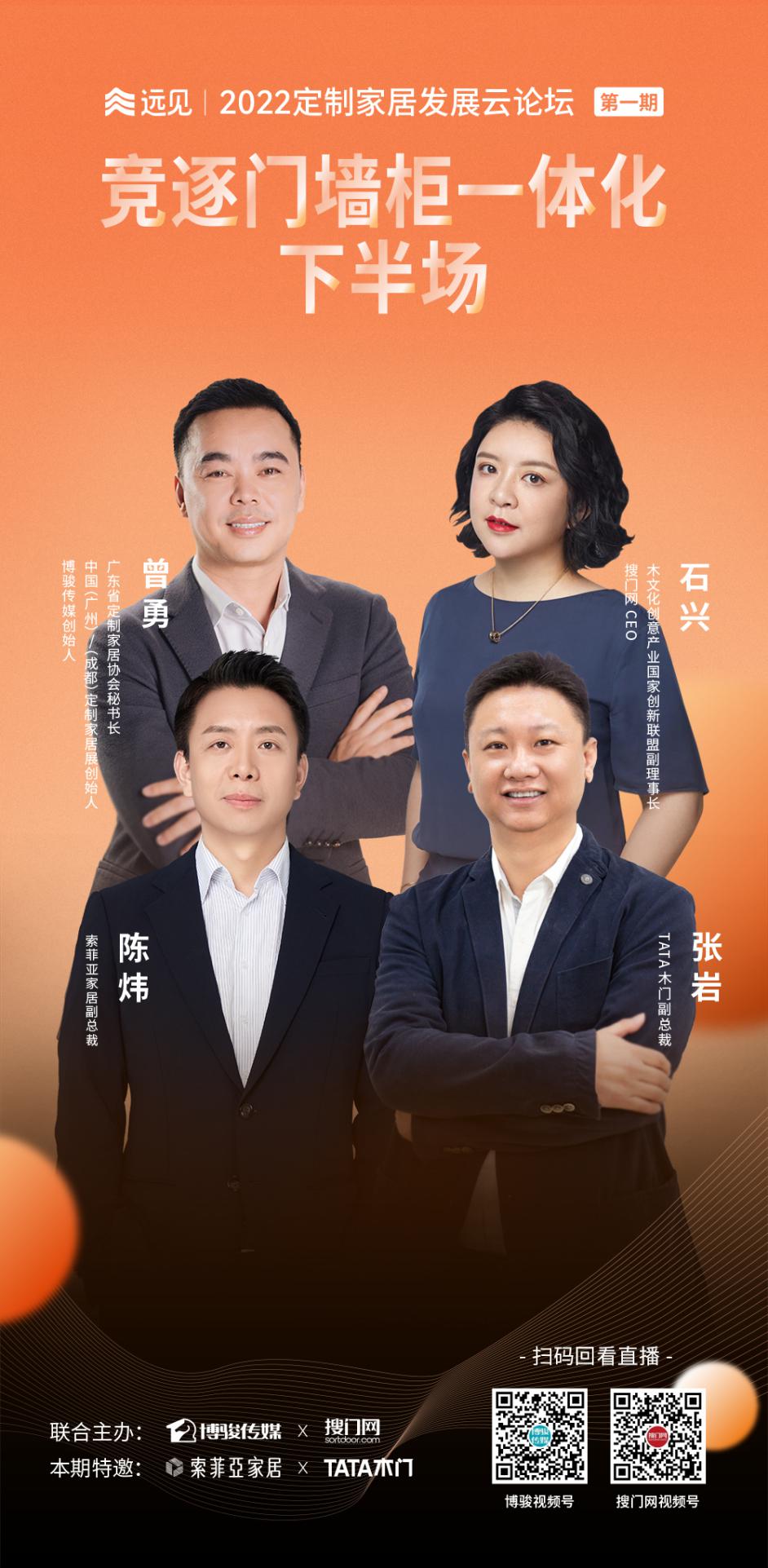 5月23日,博駿傳媒聯合搜門網舉辦“遠見·2022定制家居發展云論壇”,首期聚焦 “整家一體定制”和“門墻柜一體化”話題,邀請定制和木門行業的領軍企業代表——索菲亞、TATA木門進行對話。