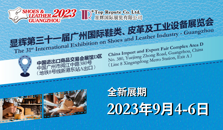 「顯輝第三十一屆廣州國際鞋類、皮革及工業設備展覽會」煥新啟航,將于2023年9月4-6日在廣交會展館D區(18.1 -20.1)舉辦,誠邀您在全新的展期再聚全新的展館,共襄顯輝廣州盛會!