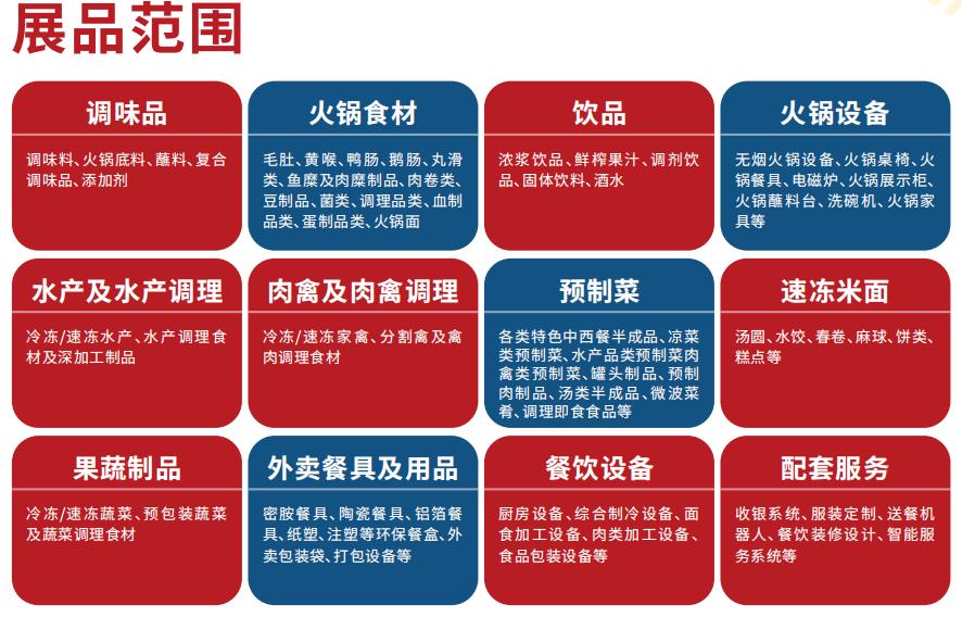 2023年,伴隨消費需求釋放,餐飲市場回暖,C端消費爆發,餐飲供應鏈市場競爭進一步加劇。為助力供應鏈優質企業實現快速增長,品牌快速占位,渠道快速布局,銷量快速提升,接下來最后一季度,成為了完成全年營收目標的決勝時期。最后的沖刺階段,火鍋行業又將會出現哪些新熱點、新趨勢、新信號?答案盡在海名·2023上海餐飲供應鏈博覽會暨火鍋食材展覽會。